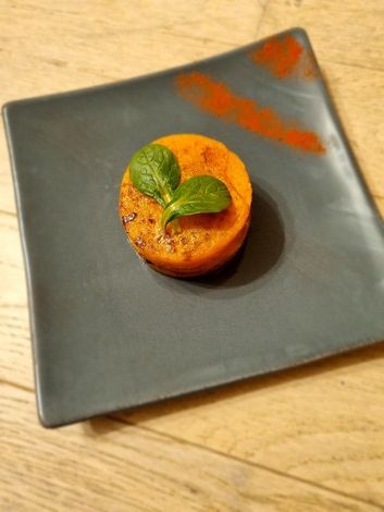 2. À l’aide d’un pinceau, enrober les tranches de butternut d’huile d’olive et d’épices, puis dorer-les à la poêle.